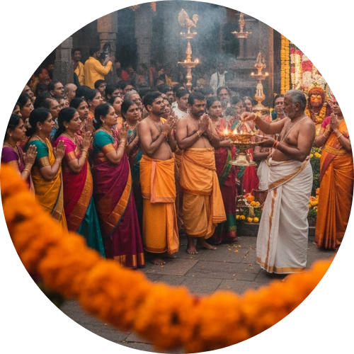 Experience the divine energy and cultural splendor of our annual festival — filled with devotional chants, bhajans, cultural performances, and blessings of Lord Ayyappa.